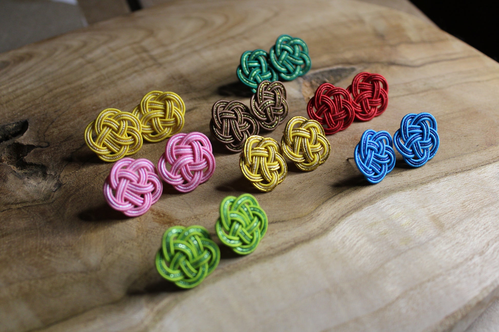 Diese handgefertigten, nickelfreien Ohrstecker aus Mizuhiki-Kordeln und Edelstahl sind leicht, elegant und eignen sich sowohl für den Alltag als auch für besondere Anlässe.